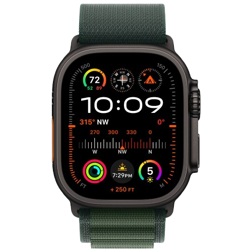 Apple Watch Ultra 2 GPS + Cellular 49mm Black Titanium Case with Dark Green Alpine Loop Band
